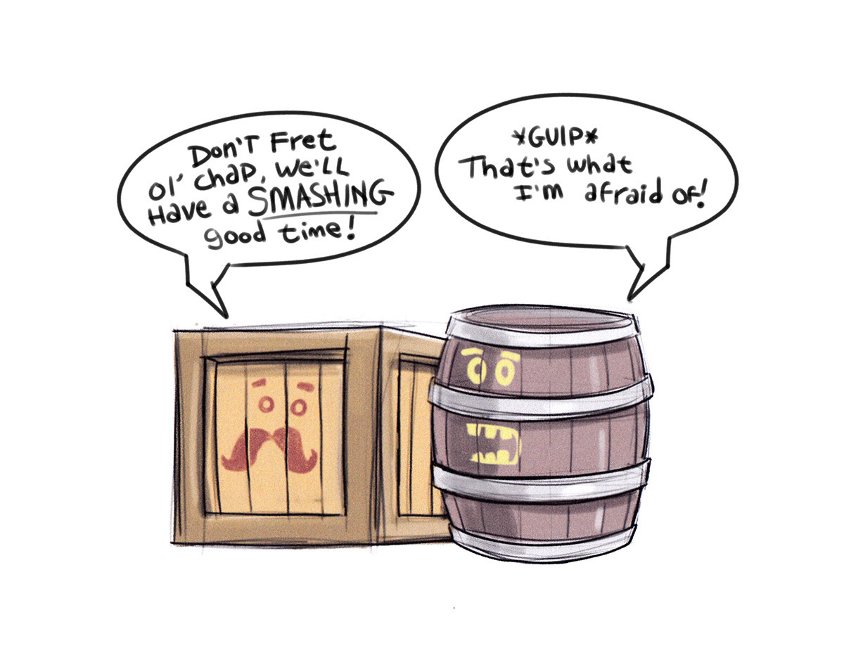 Time to smash! Concept of what would happen when the player collects a super-melee power up.