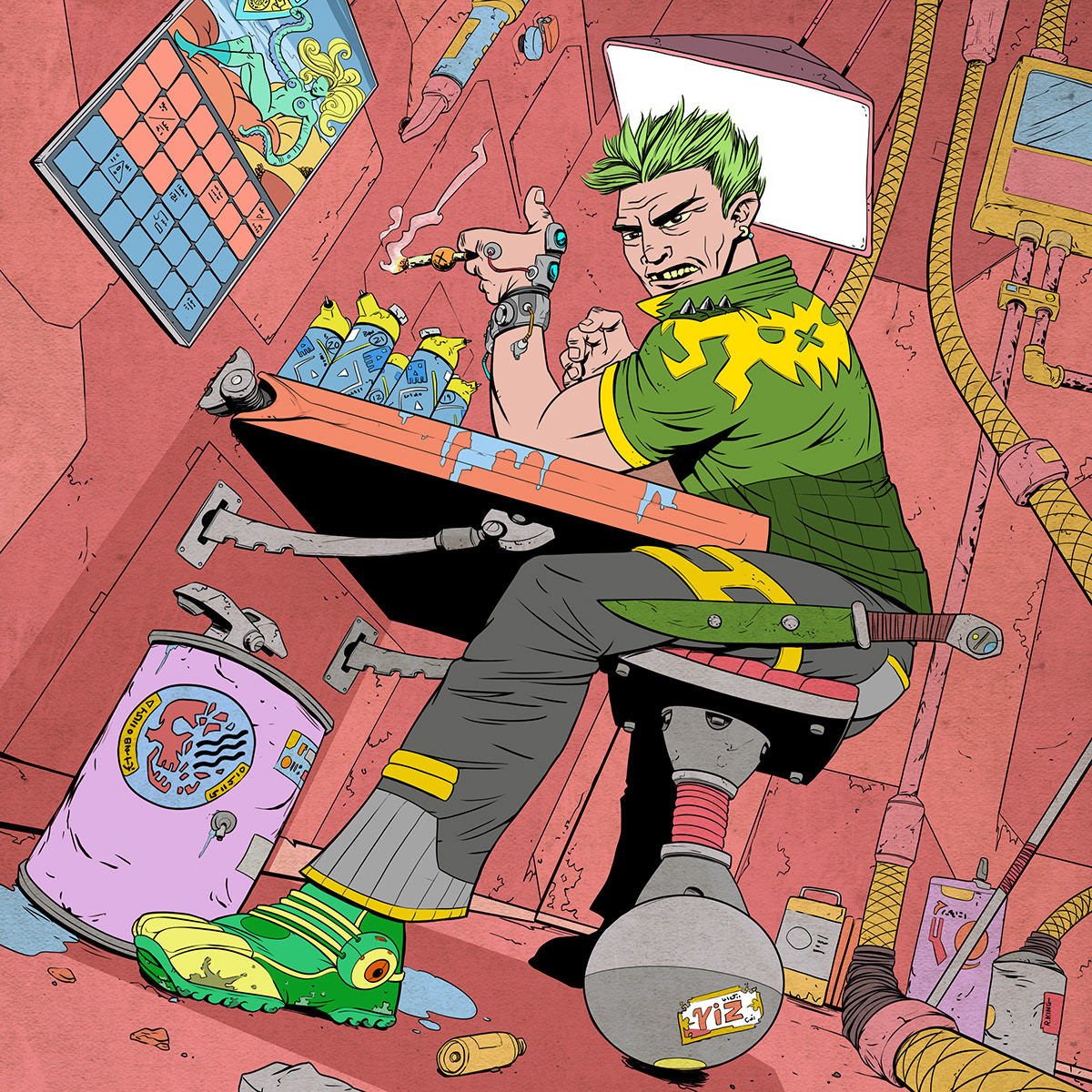 Tucked deep within a back alley of the dense neo-metropolis, Fryces Rovo oversees his small time drug operation.
